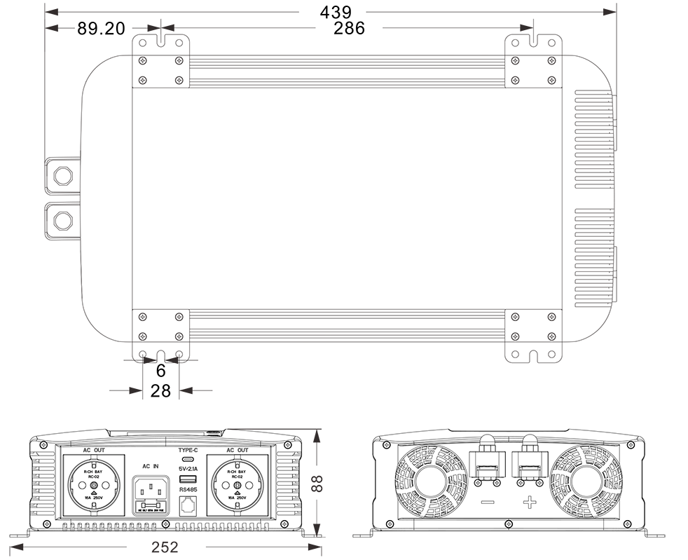 기계 도면:(439x252*88mm)
