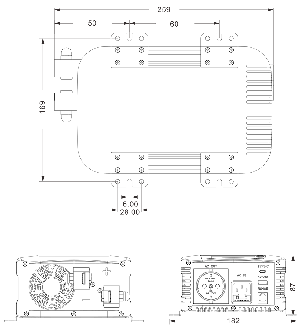 기계 도면:(259x182x87mm)