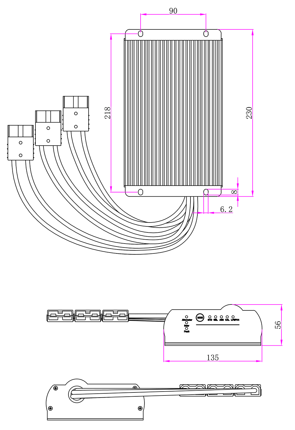 기계 도면:(230x135x56mm)